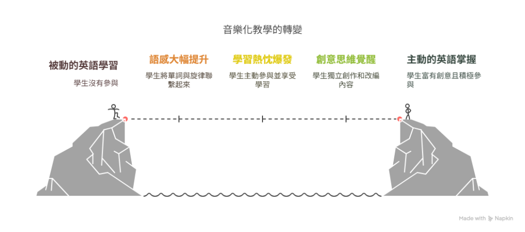 - 語感大幅提升:學生現在讀英語故事時,腦袋會想起歌的旋律,就知道怎麼唸了!