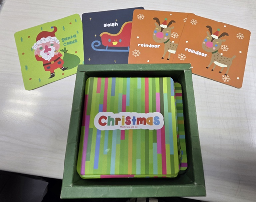 Step 1. 老師先使用聖誕節樂遊卡教聖誕節相關單字,並將樂遊卡貼在黑板上。