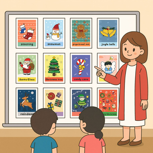 Step 1. 老師先帶領大家認識節慶字卡-聖誕節上的單字。
