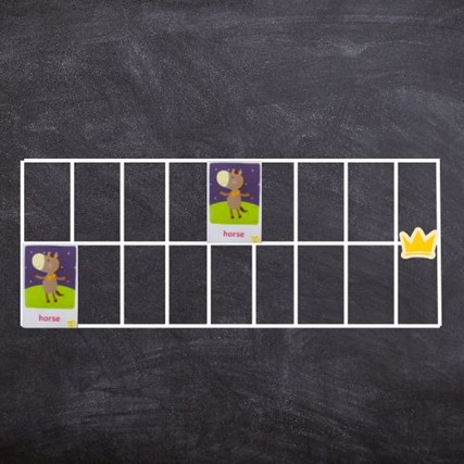 Step 3. 將學生分成兩組競賽,每次各組派一人出來。只要能唸出所有單字,即可移動該組的馬匹往前一格。