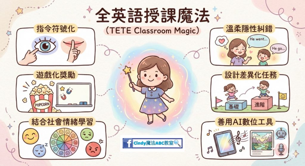 在上一篇文章中,我們探討全英語授課 (TETE, Teach English Through English) 的備課規劃,但大家心裡都曉得:當鐘聲響起、走進教室的那一刻,才是真正的挑戰。回首剛踏入教職、第一次嘗試全英語教學時,緊張地站在講台上,深怕自己說出的英語讓孩子一頭霧水,更怕教室冷場。現在的我,依然會遇到聽不懂指令的孩子,但我學會不再恐懼,因為我明白 TETE 現場追求的不是一場完美的演講,而是一次次「有意義的互動」與「可理解的輸入」,在安心的情境中引導孩子。這次我將帶領各位走進我的教學現場,透過具體的課堂實例,剖析 TETE 的操作心法,分享我那些教學現場的「魔法時刻」。