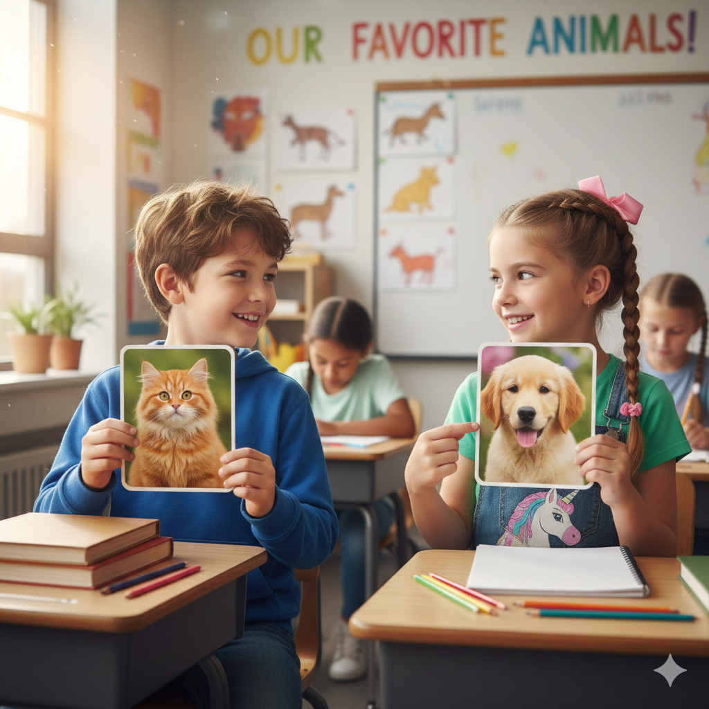 Teacher: Let’s practice talking with a partner. I’ll ask first. Do you want to have a pet?